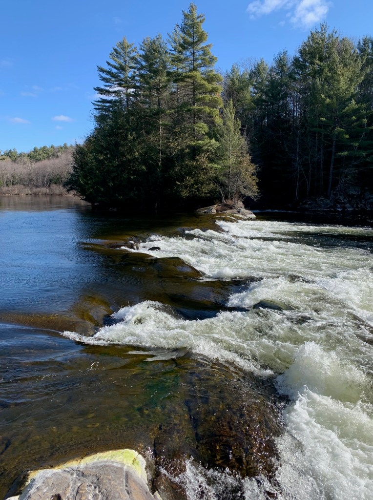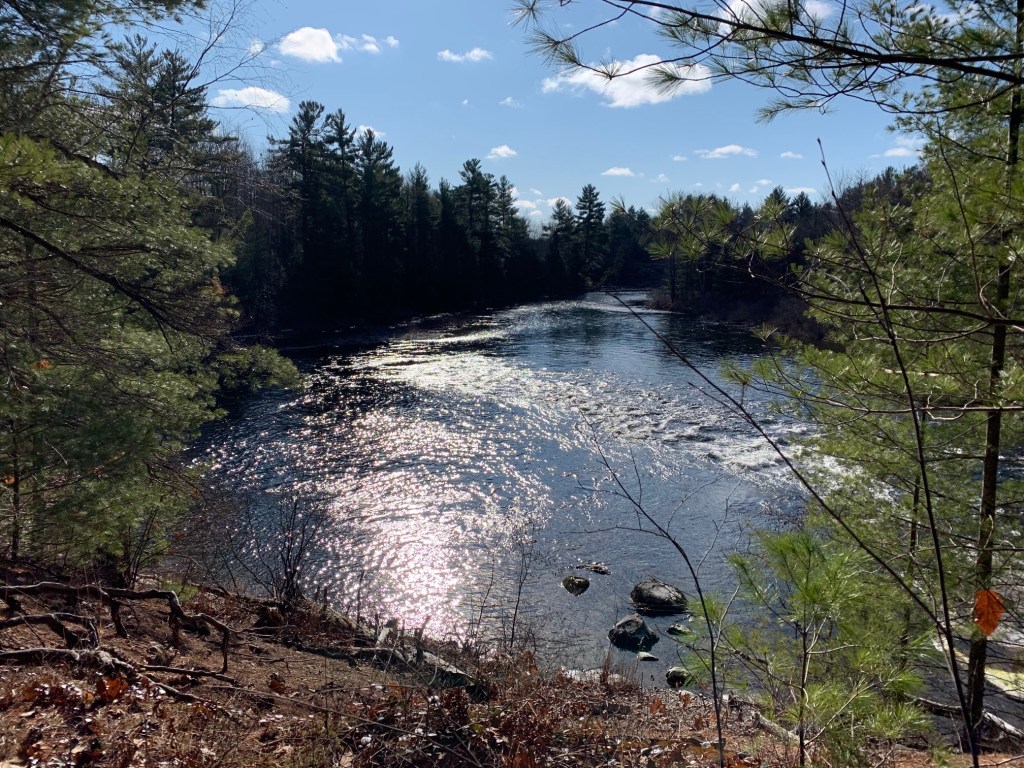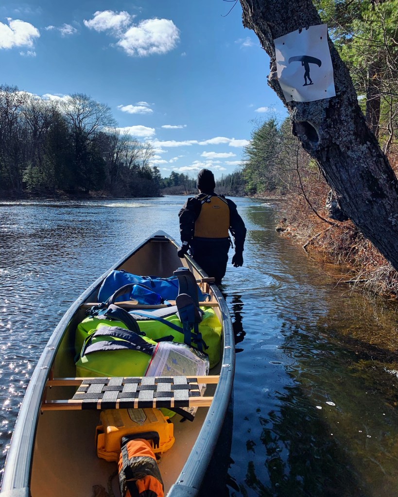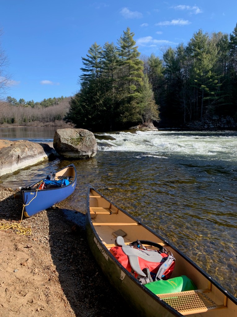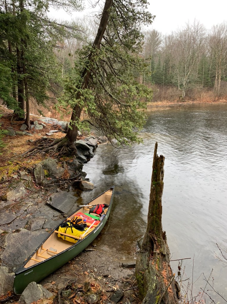 After taking a few photographs by the Baysville dam, we were on our way with sunny skies above and an ambient temperature around freezing. Lachlan and I were particularly excited, as this trip marked the inaugural voyage of our new canoe, an Esquif Pocket Canyon, and we were hoping to try out this white-water tripping boat on a few of the rapids we knew we’d encounter.