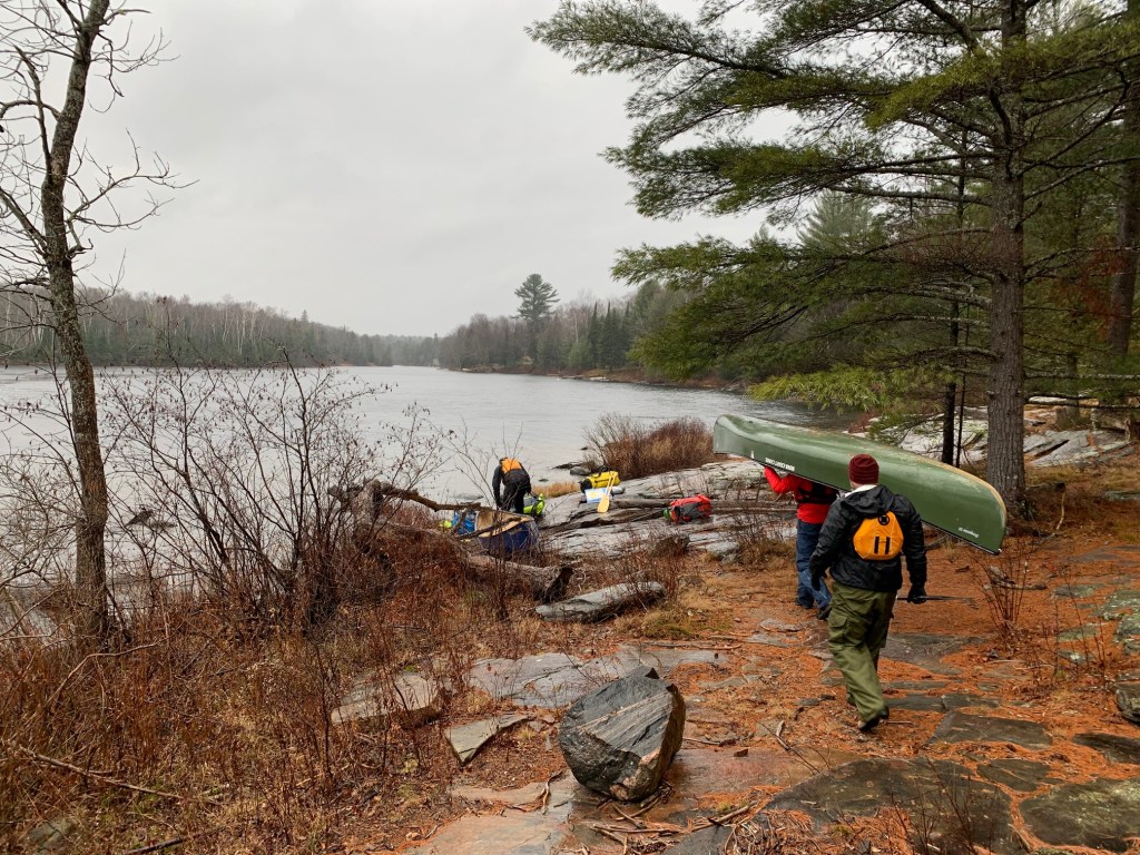Past Slater’s Falls the river flattens and meanders. By now the rain was falling with a steady rhythm. With the temperature at no more than two degrees centigrade we paddled hard to keep warm. After a few final bends in the river we saw the Fraserburg bridge and hauled out our canoes. Lachlan and Kevin would wait behind, taking refuge from the rain under the bridge, while Kai and I retrieved the second car. Despite the harsh end to our short trip, it was another great time on the water in cottage country.