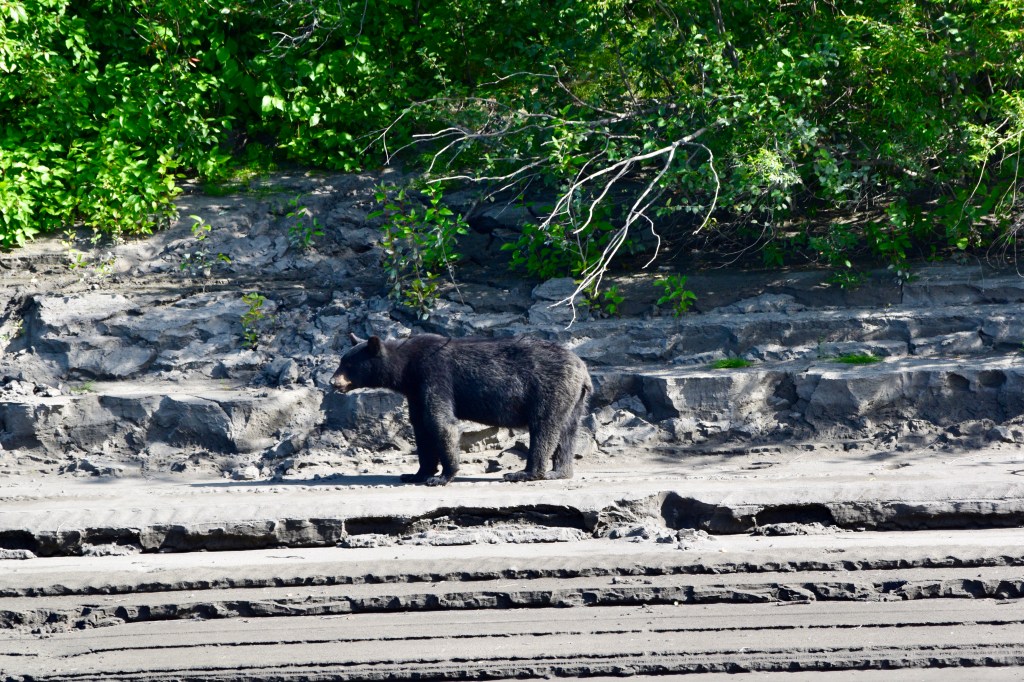 Eventually the Nahanni calms to a virtual flat-water paddle and slowly meanders toward Nahanni Butte – an omnipresent landmark in the distance on this leg of the trip. Our journey toward the Butte brought us past a large group of Trumpeter Swans and three independent black bears on approach to town.