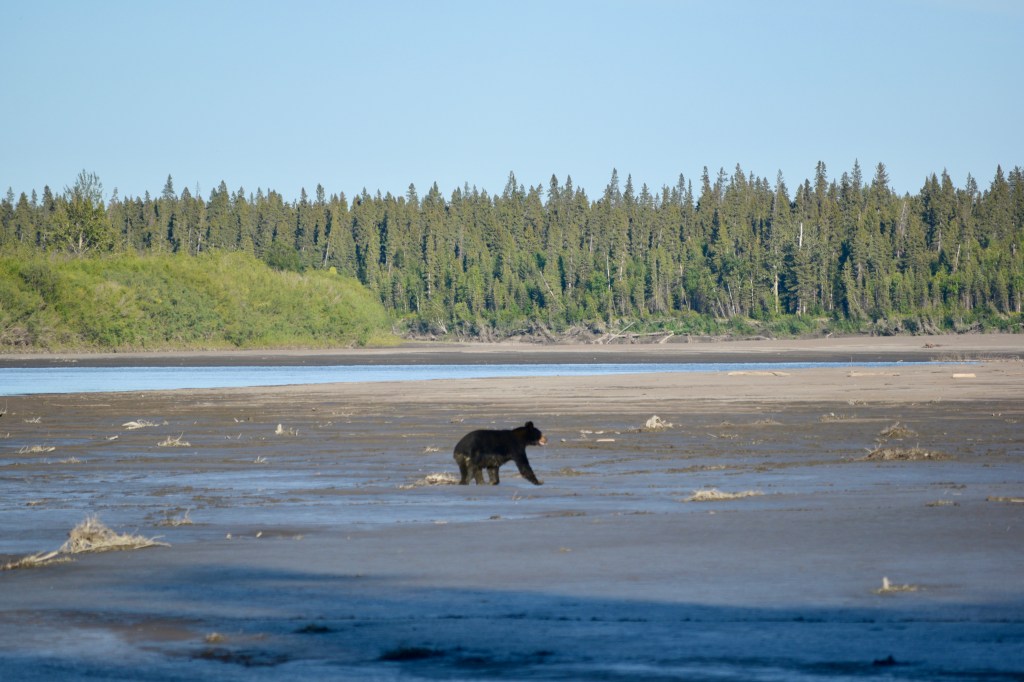 Thinking we had scared the animal away, we returned to camp, but almost instantly noticed that it had returned to the proximity of the boats – this time pulling one of our drysuits to the edge of the forest. Again, with great difficulty we managed to usher the bear back into the woods. The cycle repeated itself on five occasions before the bear left the site, seemingly for good.