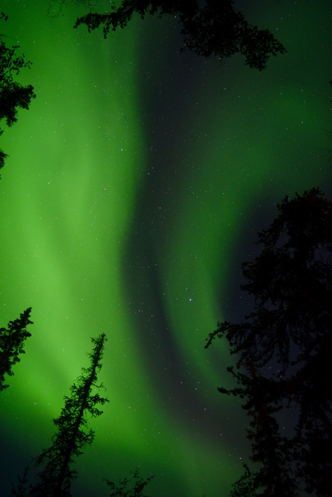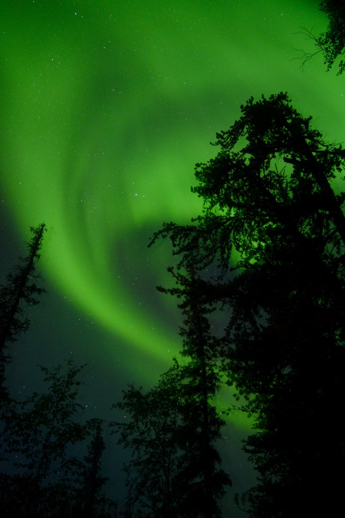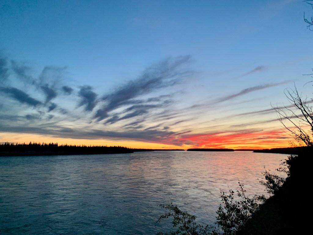 At around 1:30am, in an effort to catch one final viewing of the aurora, we hiked down to a place on river bank in Sambaa Deh called Coral Fall. As though the Northwest Territories had not astonished us sufficiently, the skies were set ablaze with the most intense display of northern lights I had ever witnessed.