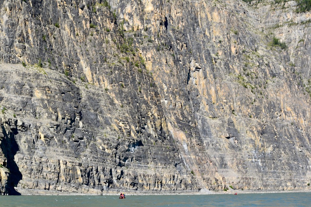 From the Warden’s Cabin, it is a short paddle to the entrance to First Canyon. Here we were greeted by a lone Dall sheep scrambling effortlessly along the steep shoreline, like an aspiration with its bleached white coat, to our left.