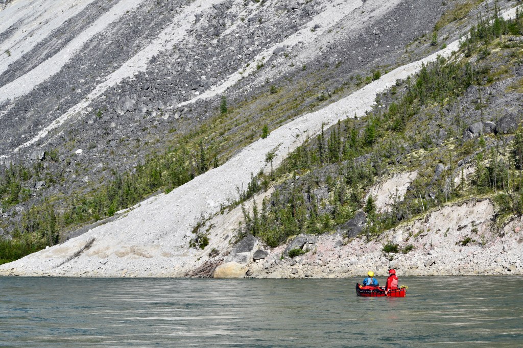 We paddled casually past Vera Creek and into Third Canyon, which runs approximately 40km through the heart of Nahanni’s Funeral Range. Third Canyon is a sight to behold. Tall, sheer peeks tower endlessly over large sections of scree and loose sediment with the snaking river winding a course below. The canyons here have a special and unique character. Unlike the pure, sheer limestone canyons elsewhere on the river, the rock composition in Third Canyon is comprised of limestone, shale and sandstone; indeed these canyons are somewhat reminiscent of sandstone mountains I had seen before in exploring the canyon lands of the American southwest.