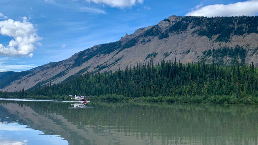 Our plane descended, minuscule against the hulking mass of Sunblood Mountain to our northeast. Our pilot banked the plane and feathered it onto the river so adeptly I had not realized we had landed.