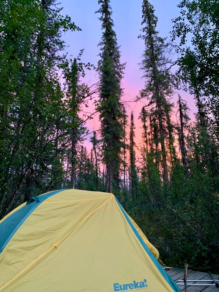 By nightfall, we had arrived at Sambaa Deh Falls Territorial Park – where we would spend our last night in our tents before driving off to Yellowknife.