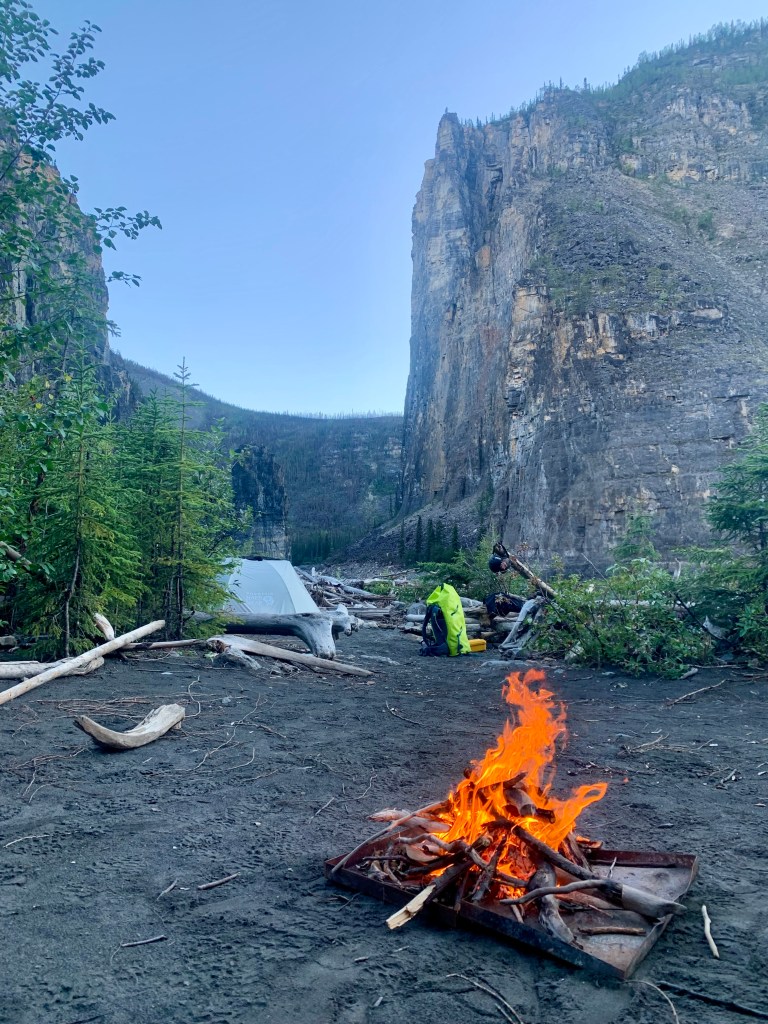 After some time, we arrived at Lafferty’s Creek – where we planned to take a rest day – and encountered guided groups occupying two campsites along the shore. We were fortunate to find a third campsite location on the far southern edge of the mouth of Lafferty Creek and staked our tents on a silty beach. Here we could sporadically catch the scent of sulphur travelling up the river from Kraus Hot Springs, 2-3km to the south.