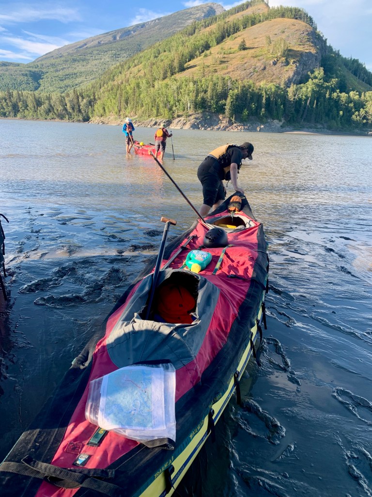 After admiring the strange animal, we pulled our boats up onto a long cobble island to scout a notoriously tricky rapid known as George’s Riffle. The rapid is characterized by large and irregular waves at centre right and can largely be bypassed by paddling the left shore of the river (under present water levels). We opted to run as much of the rapid as possible through the centre and repeatedly crashed through the massive crests and into the air before smashing back down into furious flow.