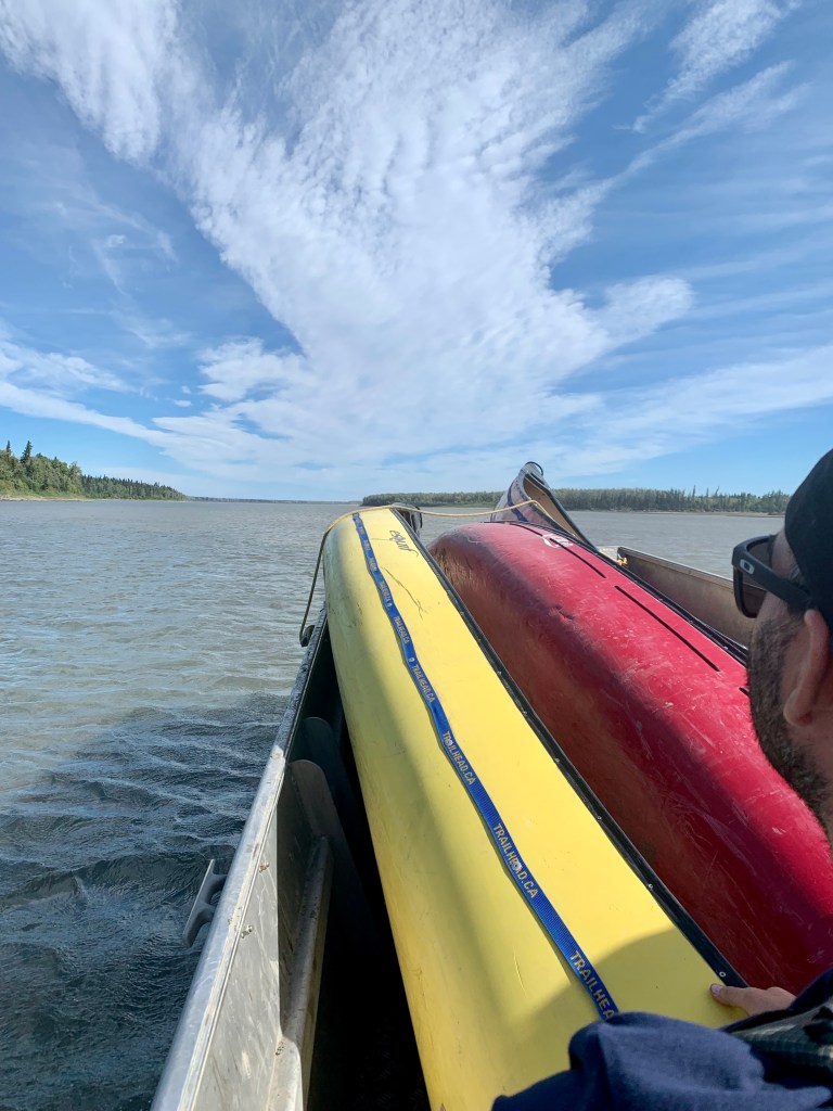 It is notable that in summer months, the community is only accessible by boat or plane. Our shuttle, accordingly, involved a boat ride to a seasonal access road upstream on the Liard River where we would meet a vehicle shuttle to take us back to Fort Simpson. In Simpson, we would transfer our gear to our rental cars and drive back to Yellowknife.