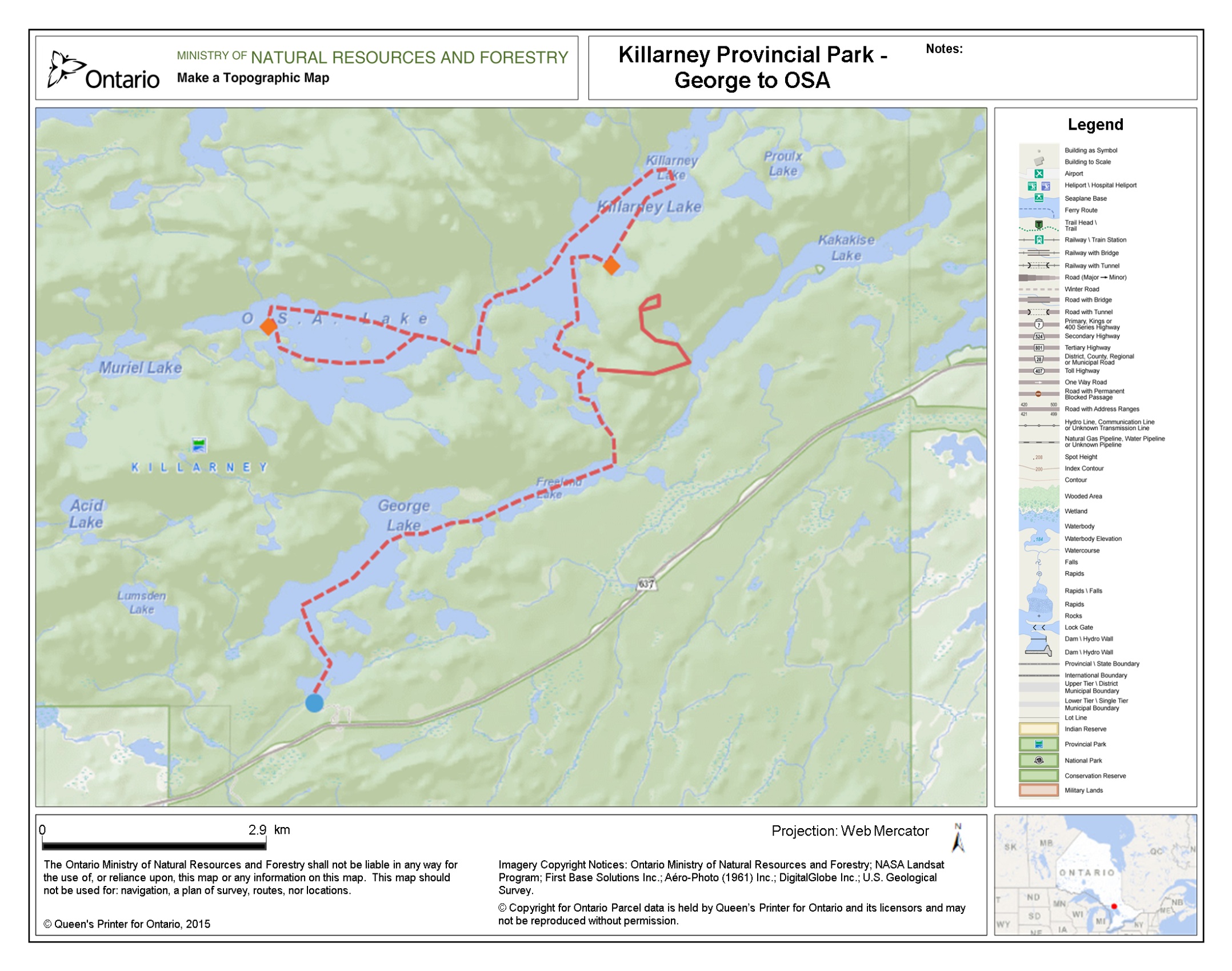 Distance: ~28km total (~26km on lake; ~1.2km over 6 portages); add an additional 5.6km to hike The Crack via the Killarney-Kakakise Lake portage