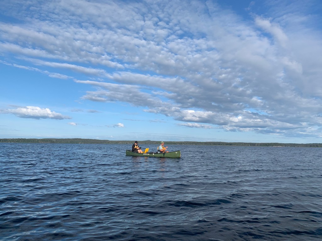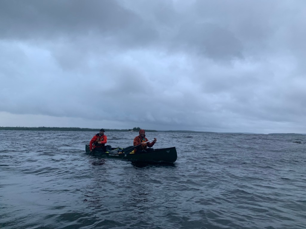 The crossing was about 1,500 metres in distance and was buffered by an occasional island. The high wind and large cresting waves, however, presented a treacherous situation. I had written in my journal at the time that this was “likely amongst the most challenging crossings I had ever completed” given the size, strength and unpredictability of the waves. Elation and humility awaited us upon completion, in the mouth of River Bay, north of Wabakimi Lake, where the strong headwinds eased into pushy tailwinds.