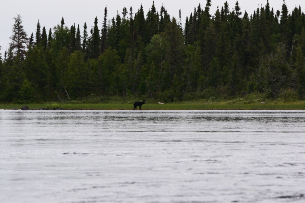 Invigorated by our success, we conquered each of the several rapids between Wabakimi Lake and Kenoji Lake, and we were even greeted by a large black bear along the way, which ambled down the shoreline before bolting into the woods.