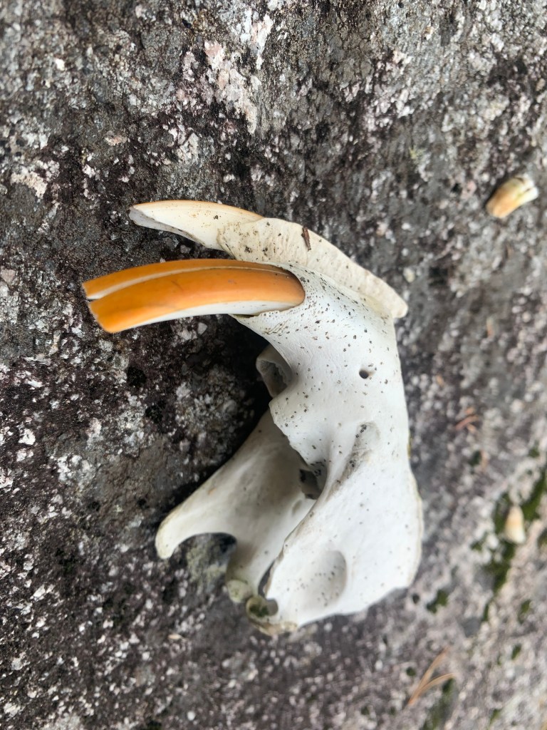 At the base of Osprey Falls we stopped to fish and had good luck again, catching both walleye and pike. Further down river we portaged around Black Beaver Rapids, paddled most of Little Sturgeon Rapids, and took the mandatory portage around Sturgeon Falls, where we found a well-preserved, sun-bleached beaver maxilla.