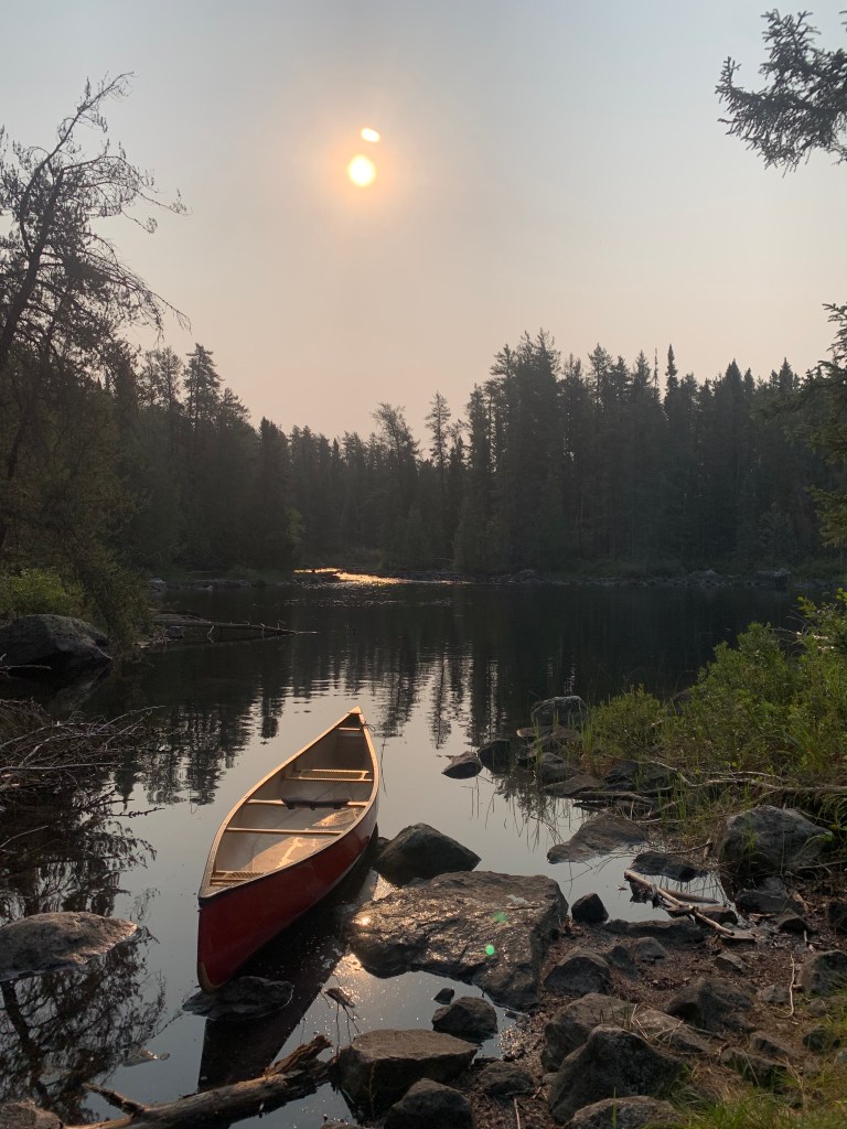 Grey vapours loomed above us as we stood on the edge of Mattice Lake in Armstrong, Ontario. The cool, early morning air held a faint scent of smoke; a manifestation of record-breaking wildfires raging just to our west that would claim some 800,000 hectares of boreal forest by the end of summer, 2021. Under the hazy, overcast sky, a slight breeze tickled the surface of the lake. The water was cold and dark and the forest was dark too. The scene held a magnetic gloominess that stoked my sense of anticipation. We were about to begin an adventure through the heart of Wabakimi Provincial Park – a land of some 10,000 lakes and 2,000 kilometres of canoe routes.